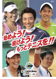 テニス活性化委員会ではテニススクールや、テニスクラブなどテニス施設やテニスショップにテニス活性化のスローガンを啓蒙する「始めよう、続けよう、もっとテニスを!」ポスターを全国約3,000ヶ所に配布しました。